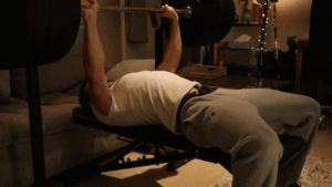 - Allonger le dos sur un banc plat, pieds à plat au sol.