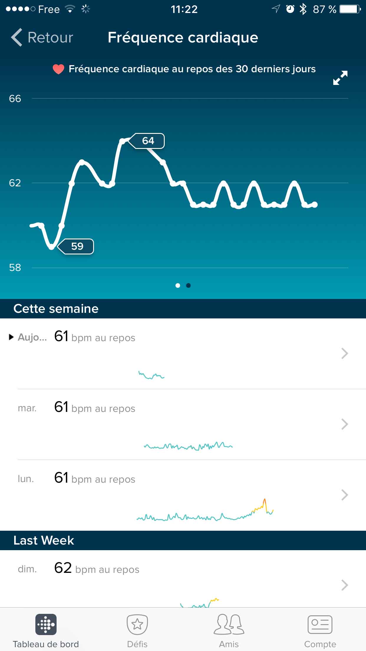 Le suivi sur le moyen terme de la fréquence cardiaque de repos sur la FITBIT