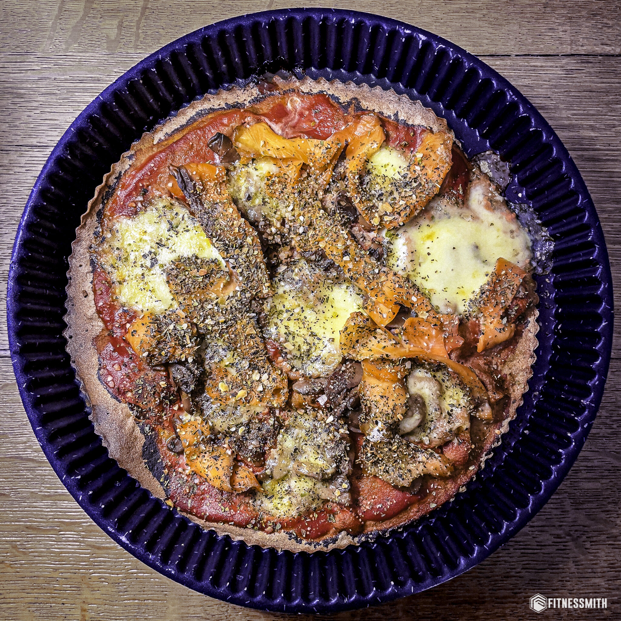 Pizza sarrasin sans gluten (saumon fumé, champignons, mozzarella)