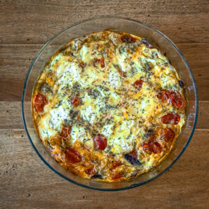 - Enfourne 25 à 30 minutes jusqu’à obtenir une frittata prise et légèrement dorée.